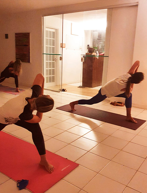 Na prática, é uma aula de yoga embasada também pela educação somática e psicologia.